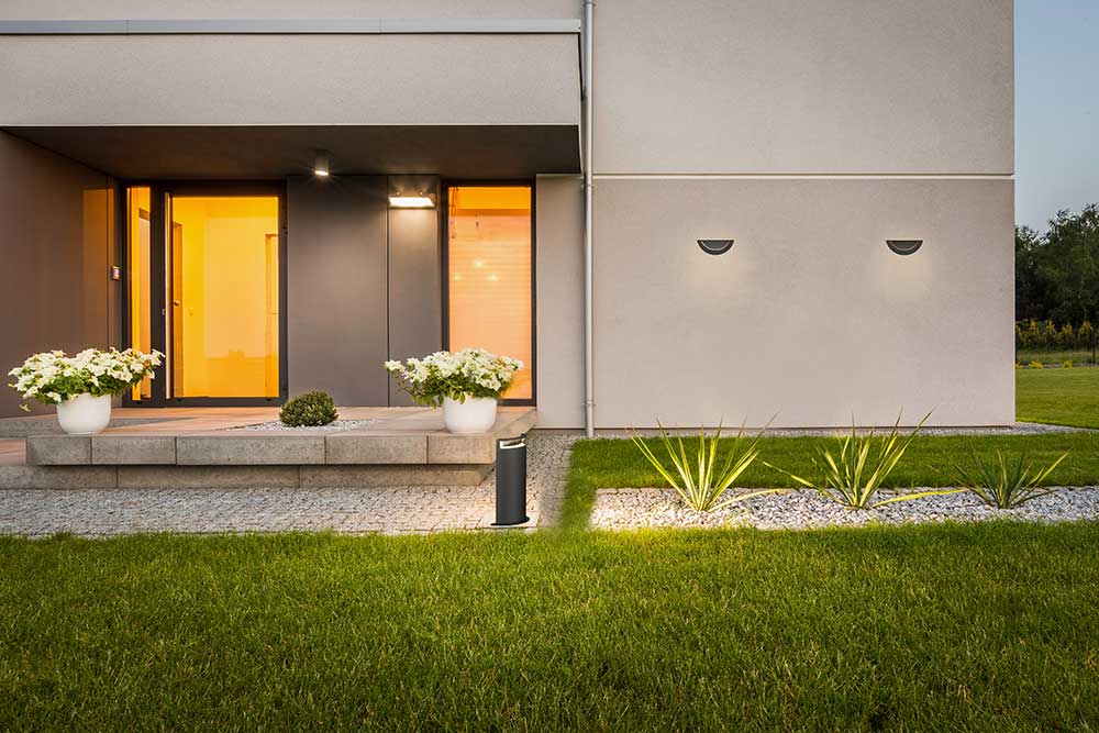 Durch die optionalen Standfüße bietet ZEUS ARCO auch als vollwertige Pollerleuchte ein außergewöhnlich elegantes Erscheinungsbild.