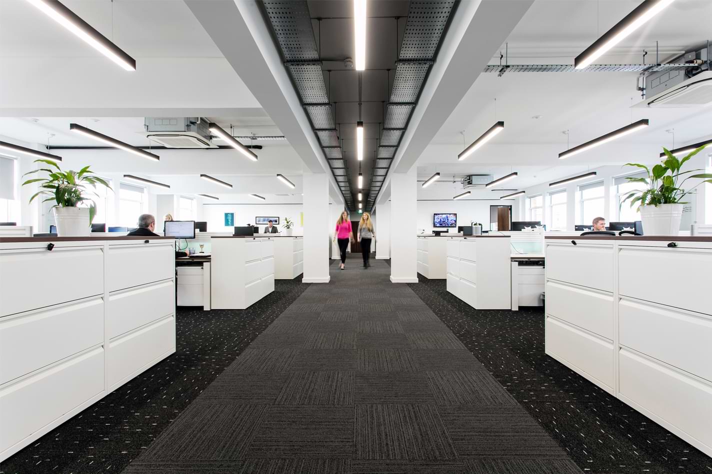 Elegant linear light profile for the design of workspaces, presentation areas and general spaces.