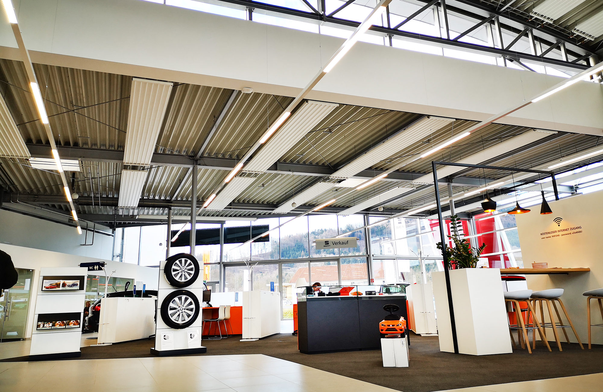 In addition to solutions for the assembly and production halls, the complete lighting solution also included efficient lighting in the offices, in the high-bay warehouse, in the sales and customer areas and in the outdoor facilities.