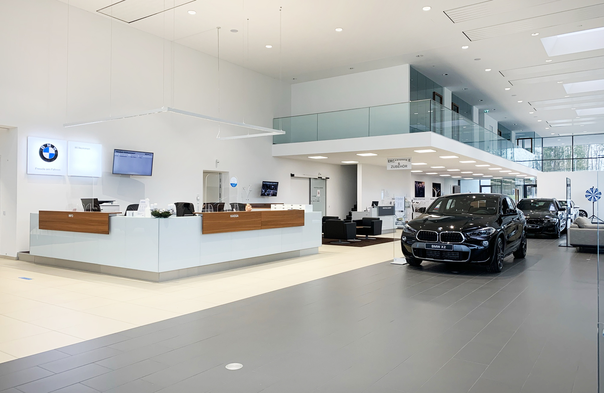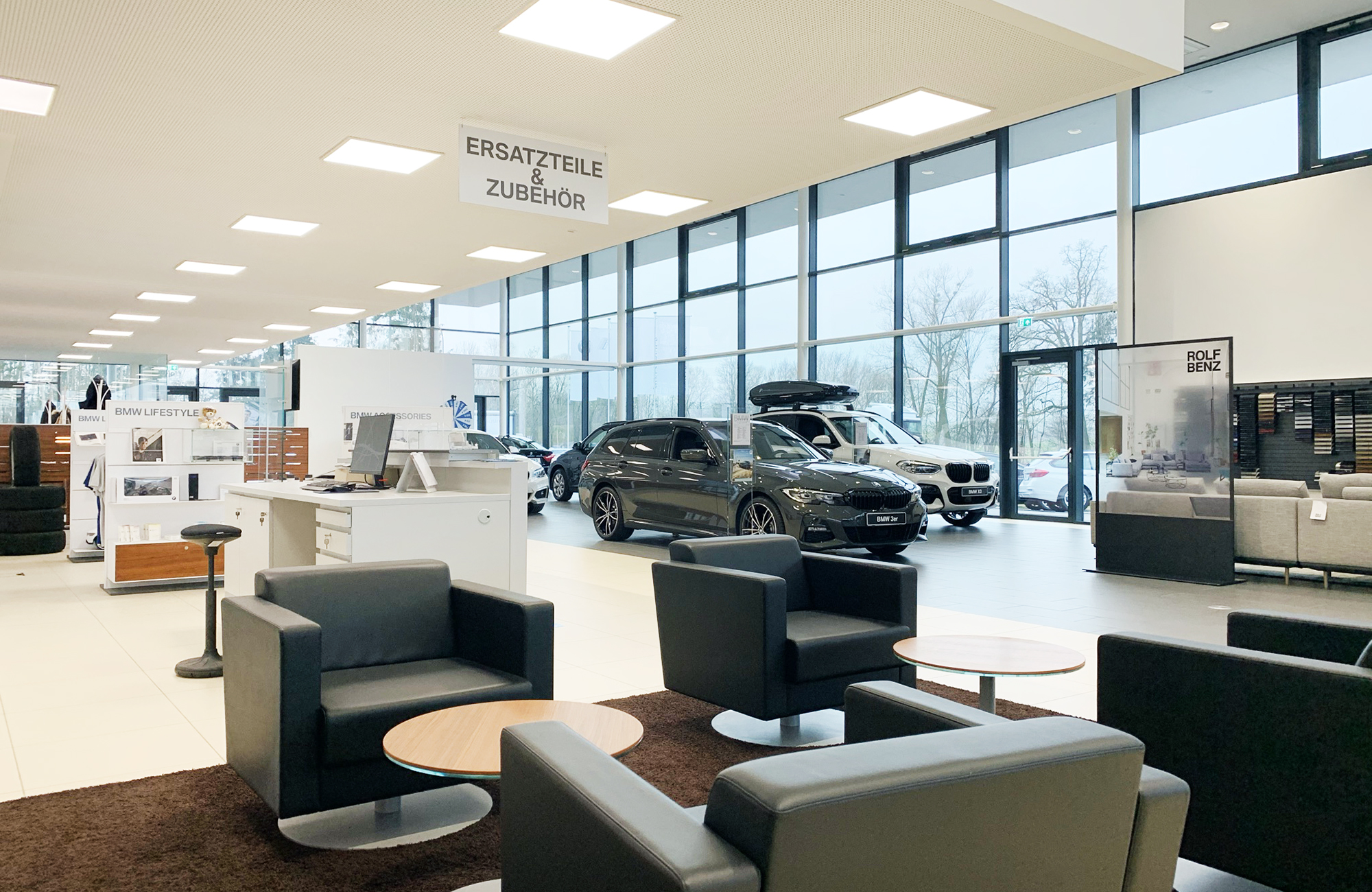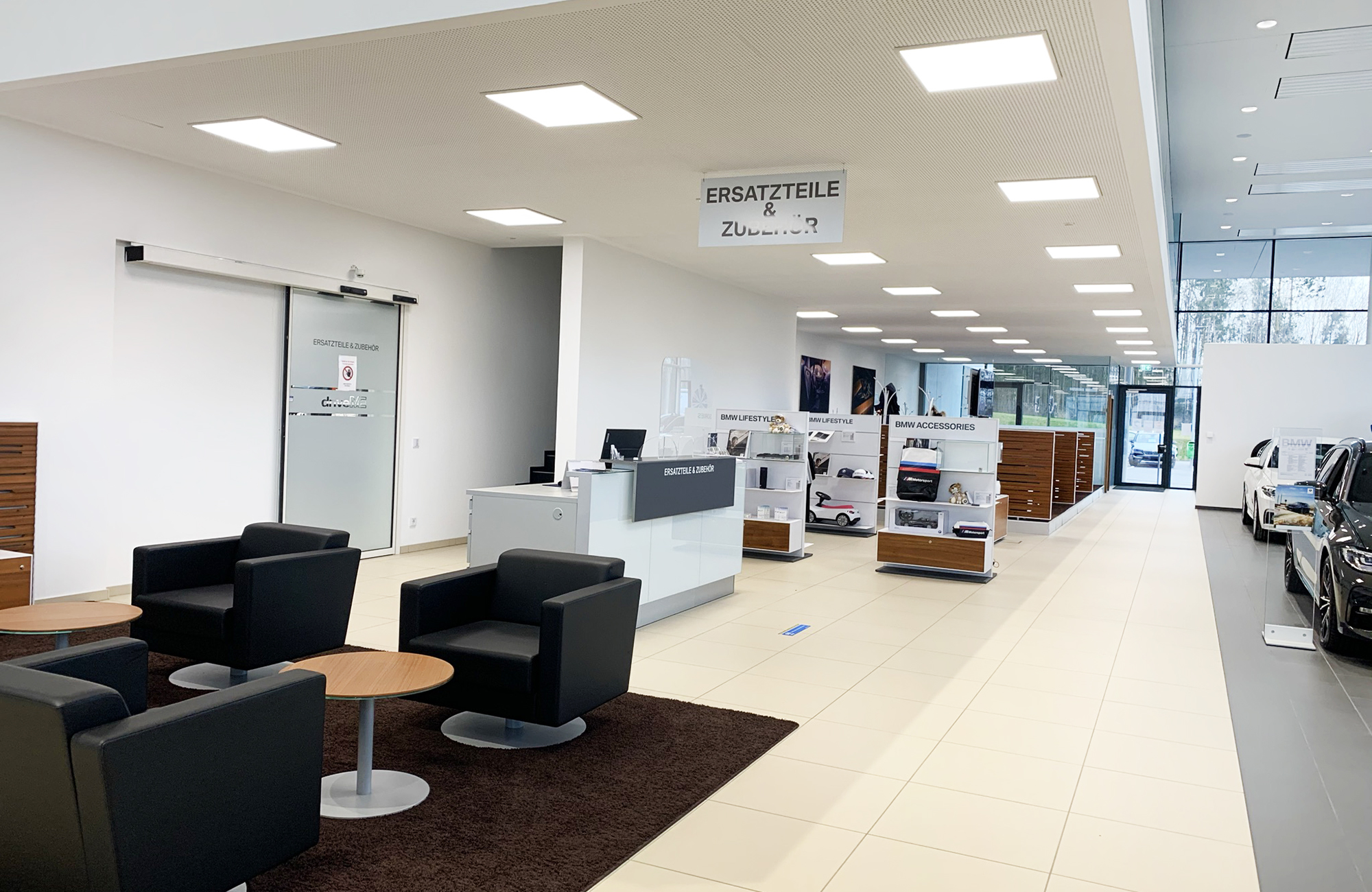 In addition to solutions for the assembly and production halls, the lighting concept also includes efficient lighting in the offices and sales rooms, as well as in the outdoor area.