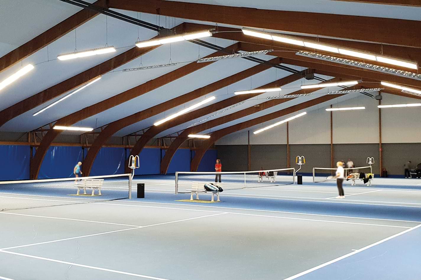 As part of a modernization of the lighting in the tennis hall with three indoor tennis courts, our GYM2 were installed.