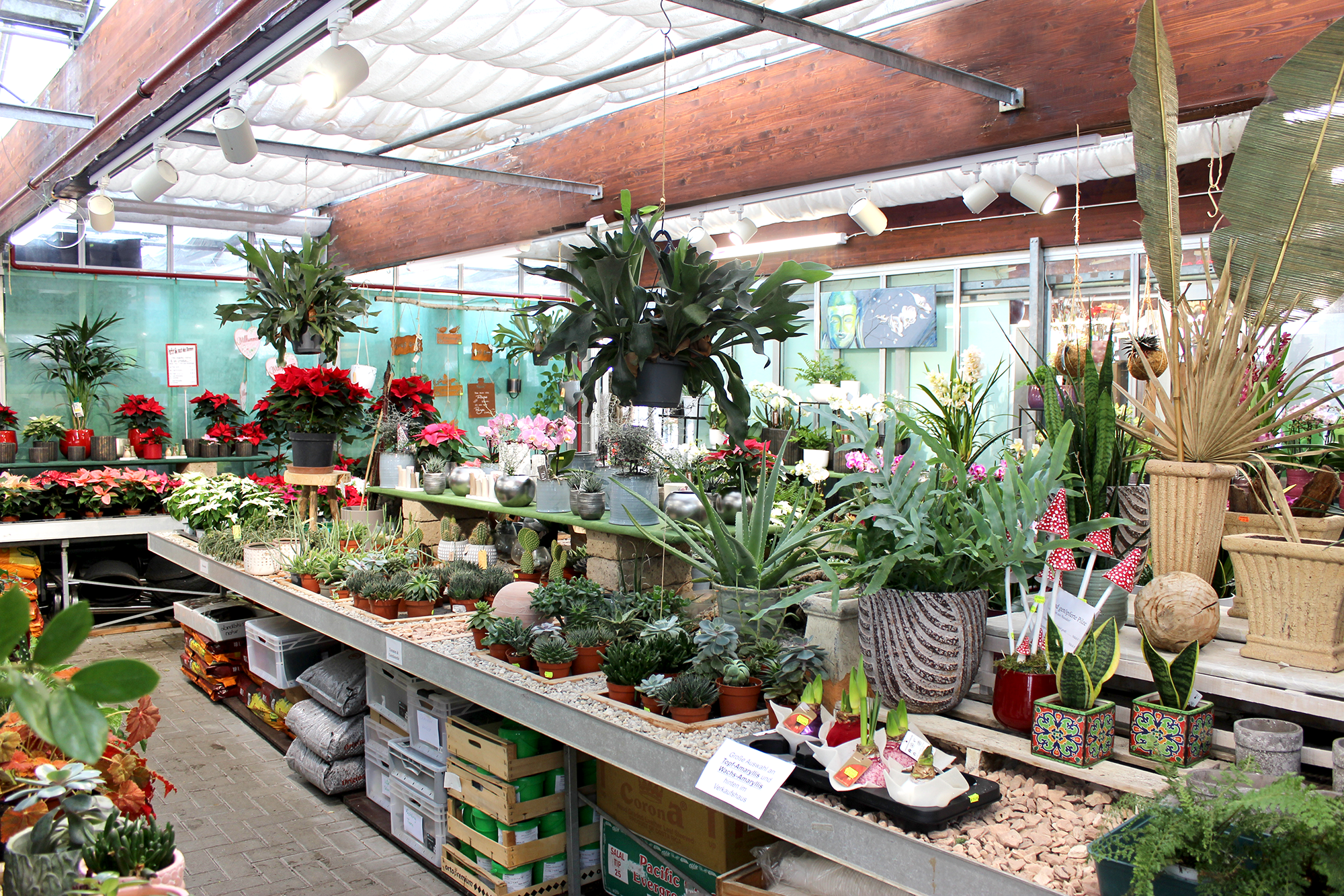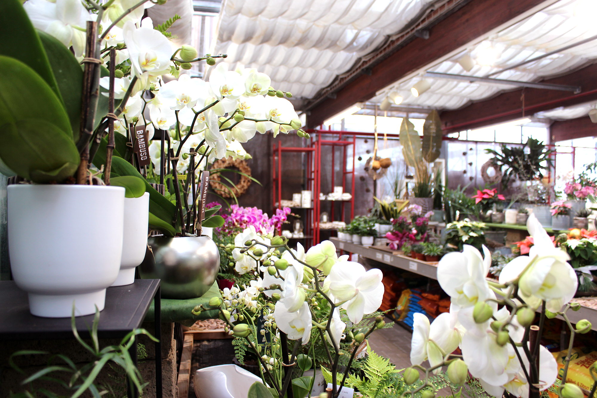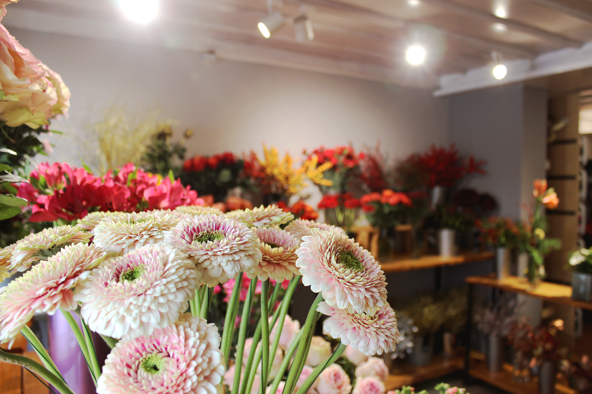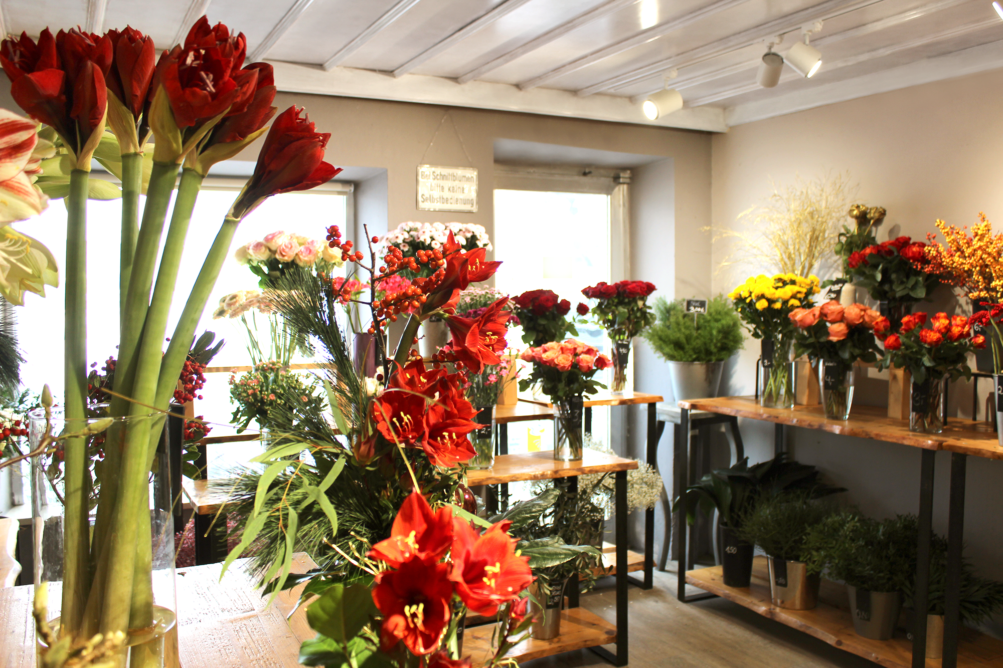With the help of individually positionable and adjustable WAVE2 track spotlights, the lighting can be dynamically adapted to the constantly changing flower arrangements to show them off to their best advantage.