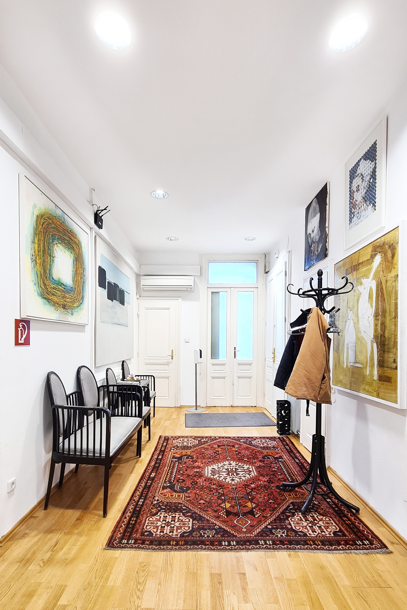 Due to the high ceilings, the angled rooms and the narrow corridors of the old building architecture, simple and timeless yet effective lighting is required.