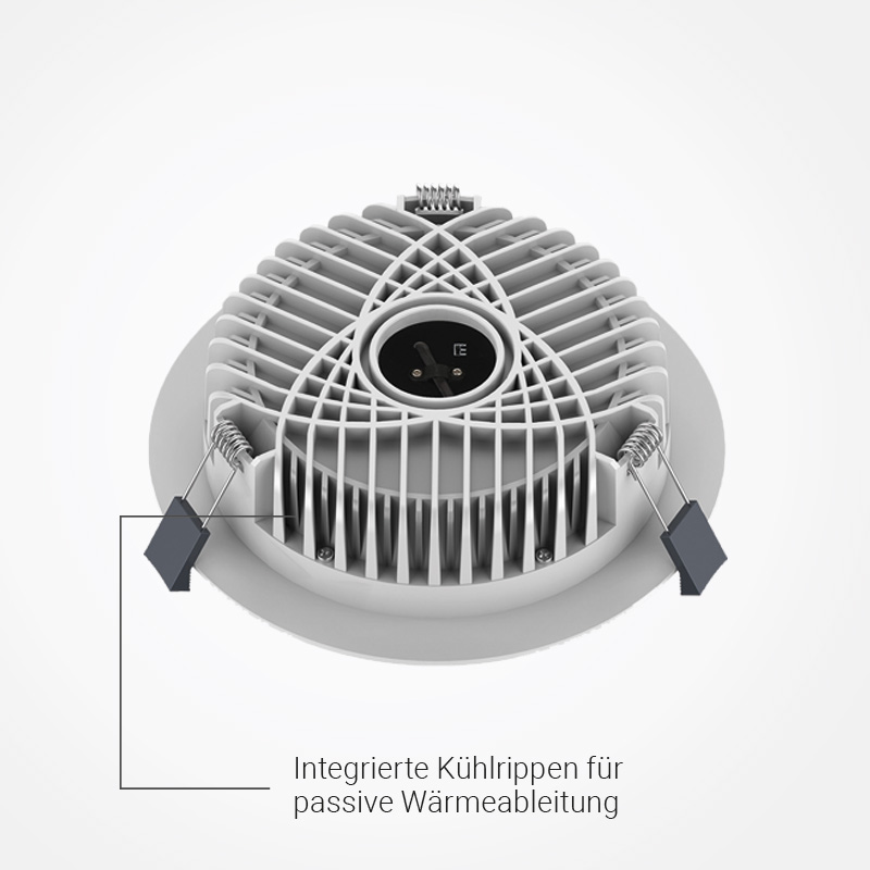 Ideal für Flure, Büros, Konferenzräume, Shops und überdachte Außenbereiche kombiniert dieses Downlight Effizienz, Langlebigkeit und stilvolle Ästhetik.