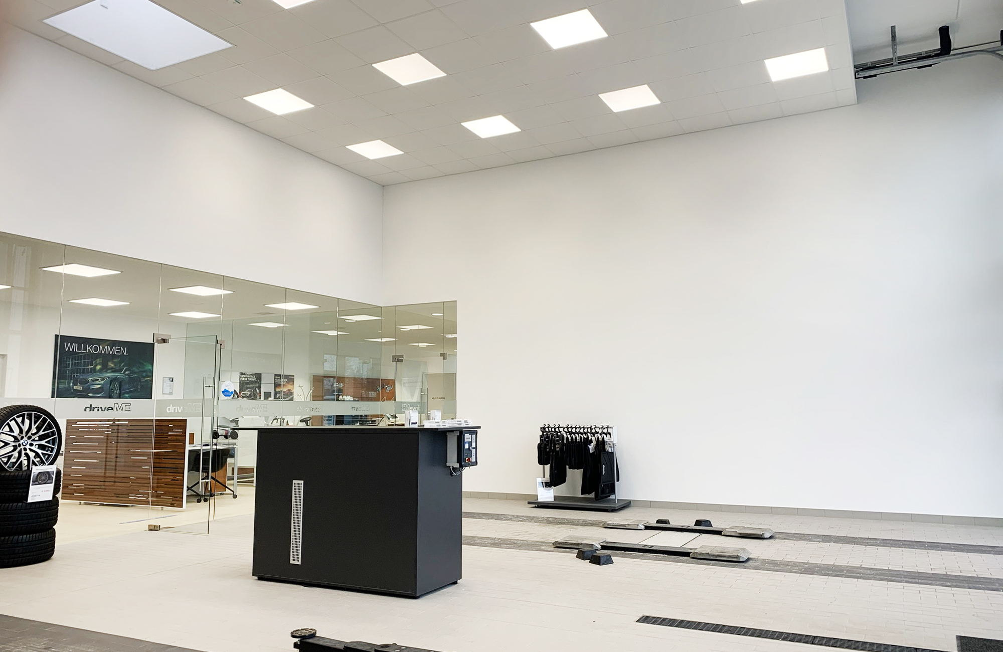Das Lichtkonzept beinhaltet neben Lösungen für die Montage- und Fertigungshallen auch eine effiziente Beleuchtung in den Büro- und Verkaufsräumen, sowie in der Außenanlage.