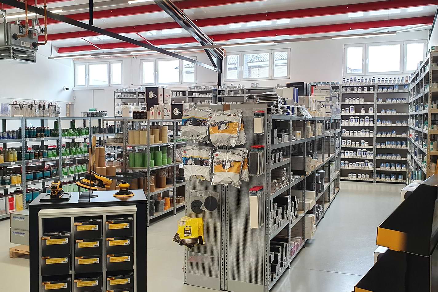 In den Verkaufsräumen steht eine große Produktvielfalt von verschiedenen Materialien bis hin zu passenden Werkzeugen zur Auswahl.