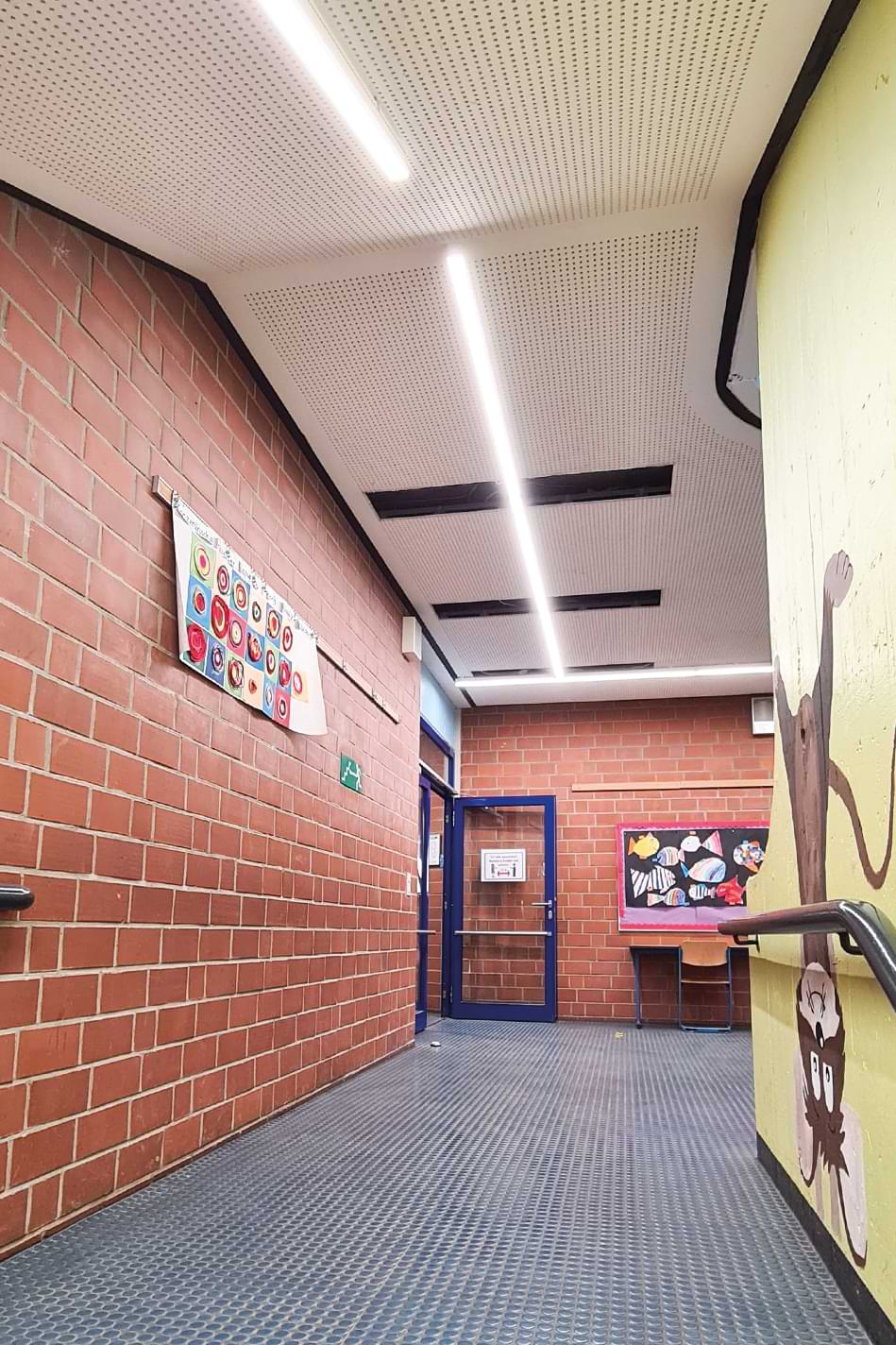 Die bislang herkömmliche Beleuchtung mit Halogenbeleuchtung konnte in Bezug auf Quantität und Qualität die Anforderungen der Schule nicht mehr erfüllen.