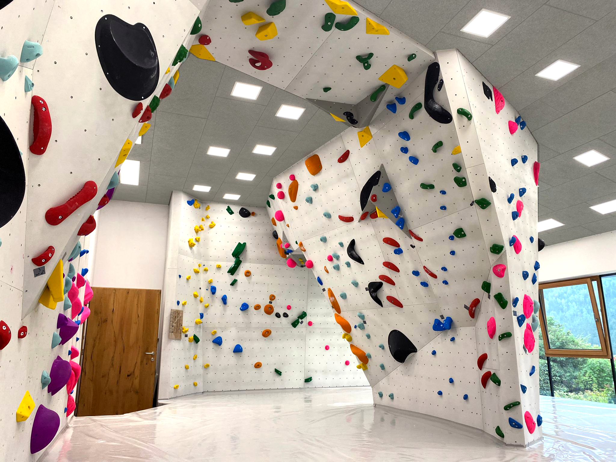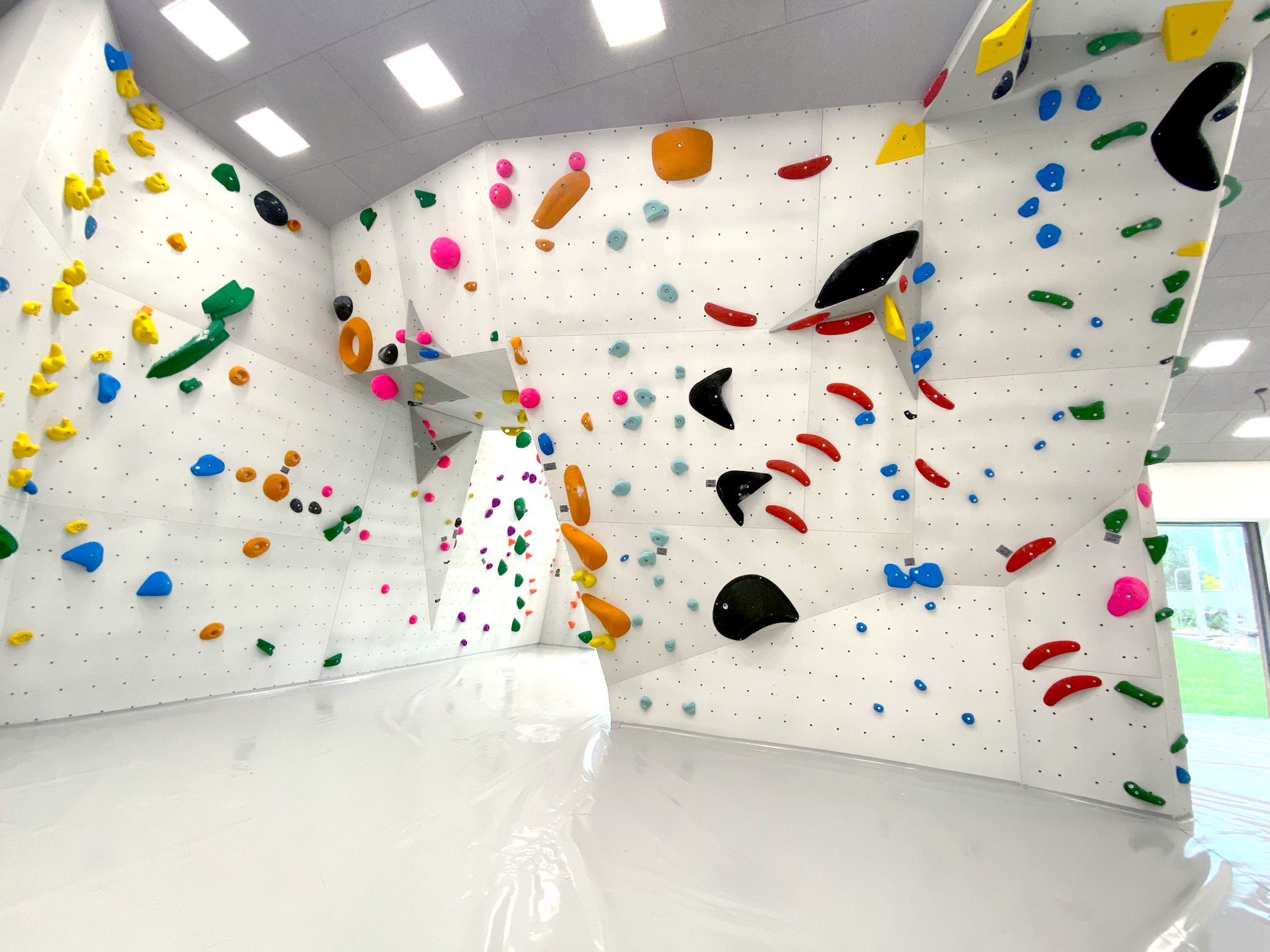 Durch eine professionelle Umsetzung durch die Firma Steilheit GmbH – Die Wandmacher ist ein erstklassiger Boulderbereich mit einem Hochleistungsboulderblock in der Mitte des Raumes entstanden.